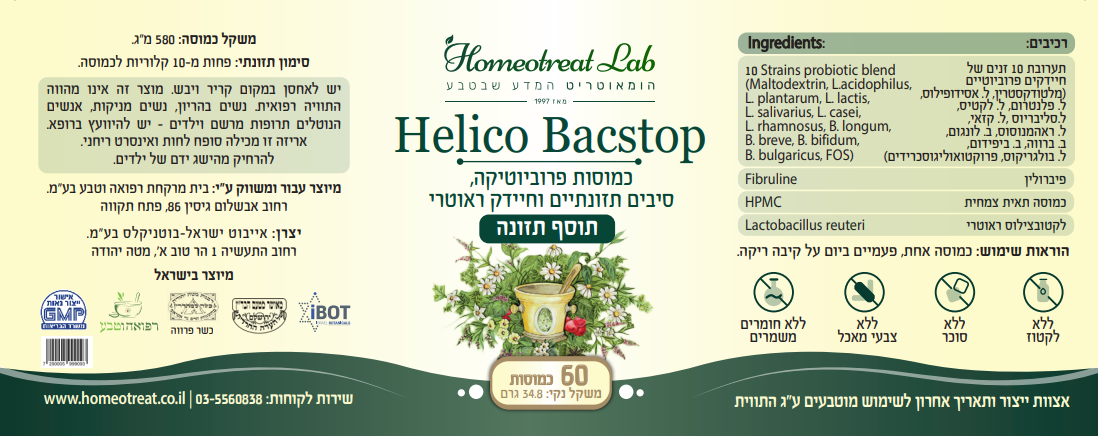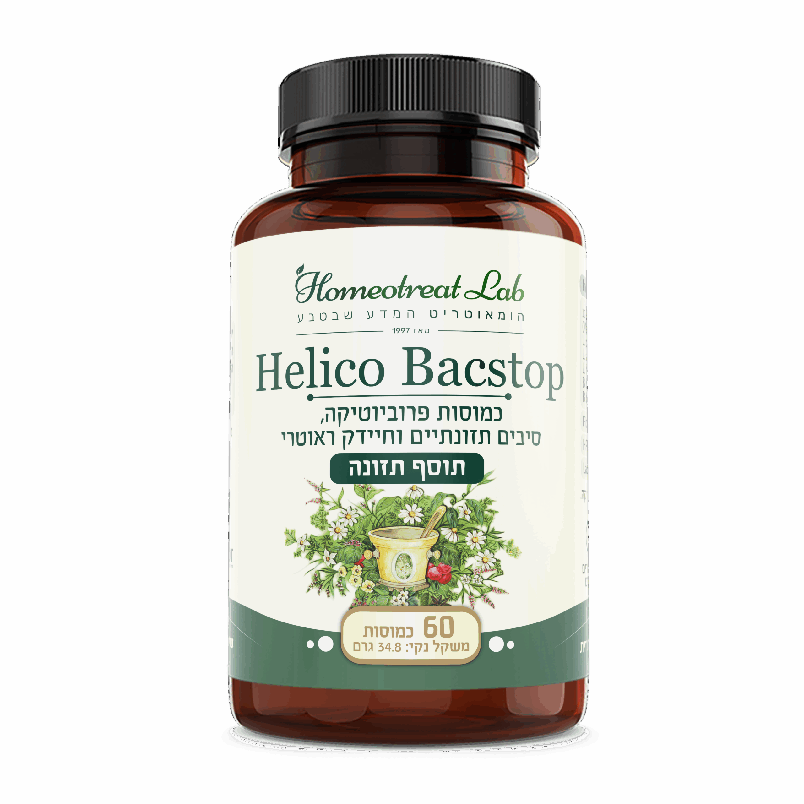 Helico Bacstop – טיפול ממוקד בשיפור תפקוד מערכת העיכול, איזון רמות החיידקים והקלה על תסמיני חיידק ההליקובקטר פילורי.