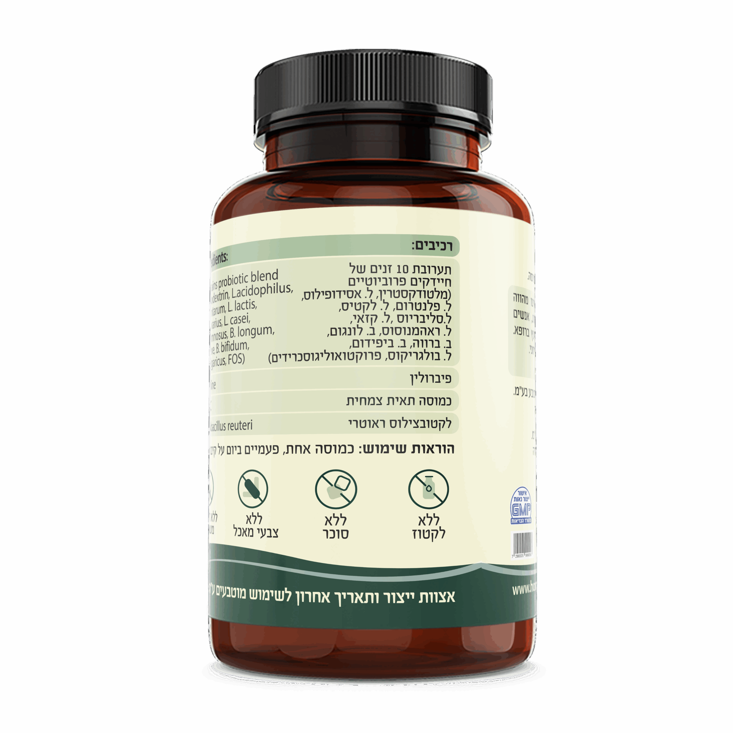 - תערובת של 10 זנים פרוביוטיים : תומכים באיזון הפלאורה וחיזוק מערכת העיכול